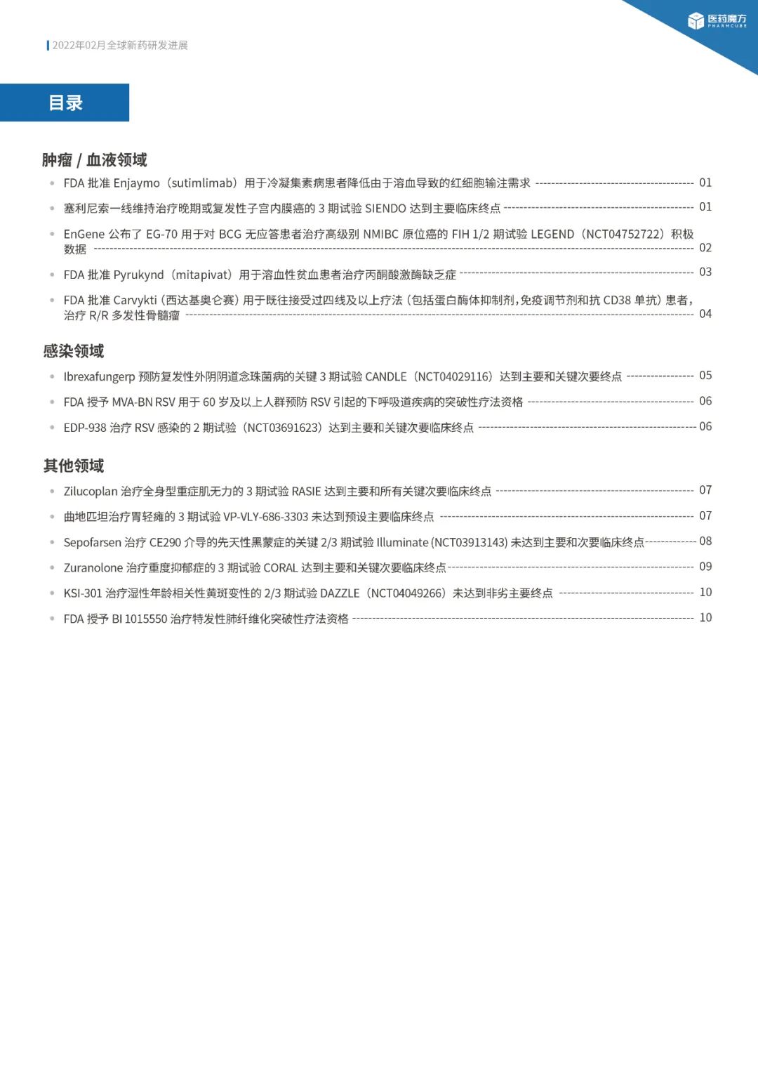 本次直播主会从医药魔方全球新药研发进展2月月报中抽选部分内容进行讲解,该报告专注于收录以下几类重要进展: