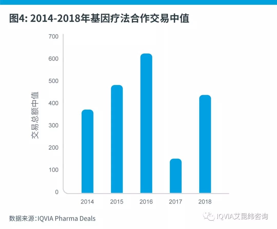 表2显示了2014-2018年,按潜在交易总额排序的前五大基因疗法交易。有三项交易在2018年公告,大多是有晚期基因疗法管线的公司,这些公司的风险较小,因此估值更高。
