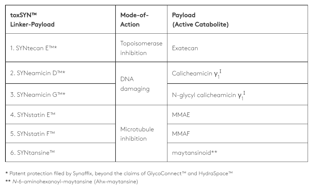 toxSYN是一种化学链接-小分子药物平台,覆盖多种小分子药物类别,扩大了抗体构成ADC的范围。