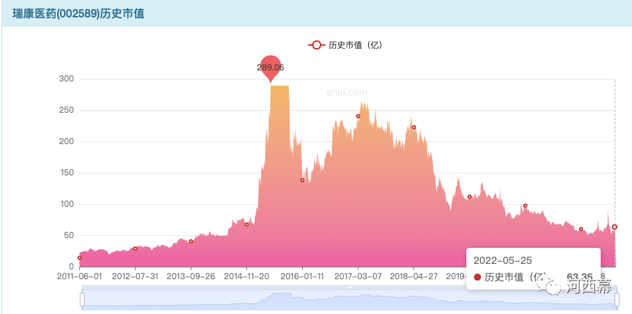 瑞康的股票,也已经从2017年的250亿一路跌到如今的60亿。