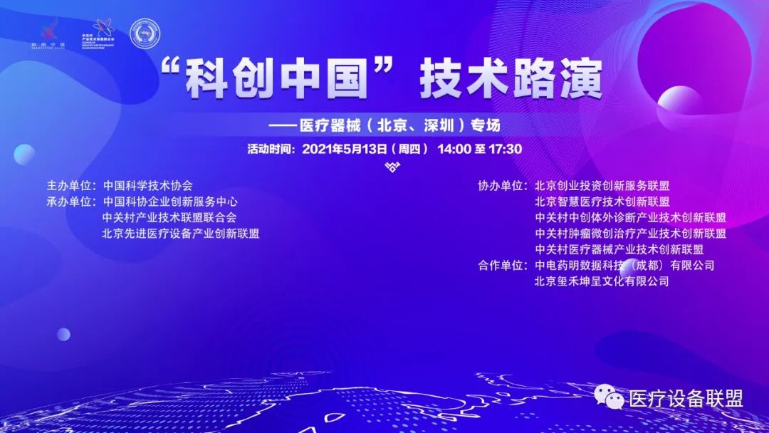 兹定于5月13日(周四)14:00举办“科创中国”技术路演活动—医疗器械(北京、深圳)专场。本期活动由中国科学技术协会主办,中国科协企业创新服务中心、中关村产业技术联盟联合会、北京先进医疗设备产业创新联盟联合承办。活动遴选7家优秀初创型医疗器械领域企业线上路演,邀请了7位行业专家、投资人和企业家线上点评、交流和对接,并通过中国科协“科创中国”平台进行全国直播,欢迎各界人士线上观摩。