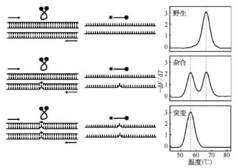 图1 基于双标记 自淬灭探针的熔解曲线分析原理