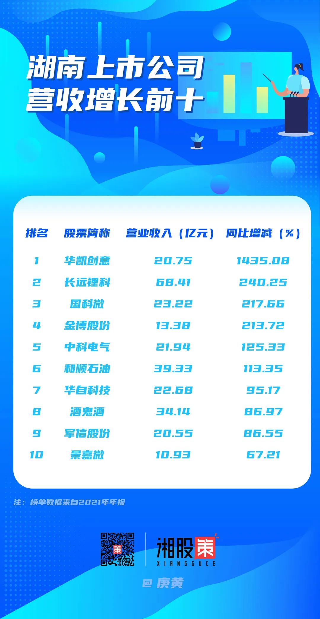 除此之外,长沙高新区企业长远锂科、华自科技、景嘉微均位列湖南上市公司营收增长前十。