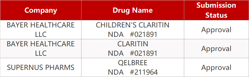 1.FDA批准十年来首款非兴奋剂多动症疗法。Supernus公司去甲肾上腺素再摄取抑制剂Qelbree(viloxazine缓释胶囊)获FDA批准上市,用于治疗6-17岁的注意力缺陷多动障碍(ADHD)患者。这也是十年来首款治疗ADHD的创新非兴奋剂疗法。去年12月,这款创新疗法在治疗成人ADHD患者的Ⅲ期临床中也获得了积极的结果,该公司计划今年下半年递交补充新药申请,扩展Qelbree在成人患者中使用。