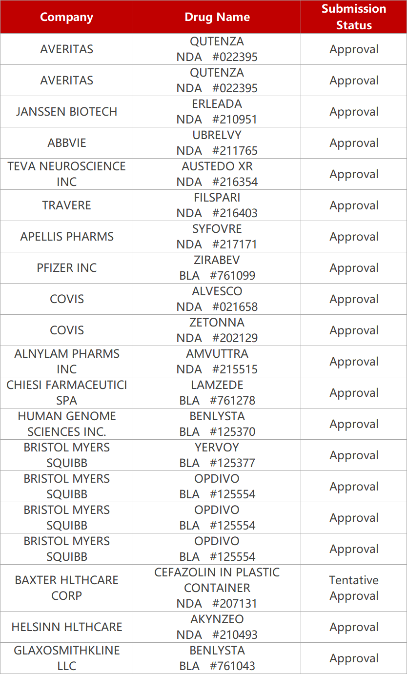 1.Mirum公司胆汁淤积症新药报sNDA。Mirum公司宣布递交口服回肠胆汁酸转运蛋白(IBAT)抑制剂maralixibat(Livmarl)的补充新药申请(sNDA),用于治疗两个月及以上进行性家族性肝内胆汁淤积症(PFIC)患者的胆汁淤积性瘙痒症状。在Ⅲ期研究MARCH PFIC中,maralixibat较安慰剂显著改善患者瘙痒程度(p<0.0001);血清胆汁酸水平较基线也显著下降。2021年10月,FDA已批准Livmarl用于治疗1岁及以上Alagille综合征(ALGS)患者的胆汁淤积性瘙痒症。