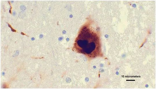 美国约翰霍普金斯大学医学院的研究人员确定了一种名为α -突触核蛋白的大脑蛋白质的一部分,这一部分使它能够附着在神经元上,从而可能导致帕金森病的发展。帕金森病是一种逐渐恶化的神经系统疾病。这幅图片显示从帕金森病患者的脑组织中提取的α -突触核蛋白聚集物。