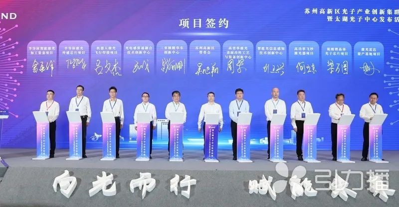 太湖光子产业投资基金,先进激光创新中心等院所平台、高功率飞秒激光器等科技项目现场签约。基金由苏州高新区管委会、苏州创新投资集团、华泰紫金投资和苏州长光华芯共同发起,总规模100亿元,首期10亿元,重点围绕光电子产业进行投资布局,助力建设太湖光子中心、打造中国光子产业科创新高地。