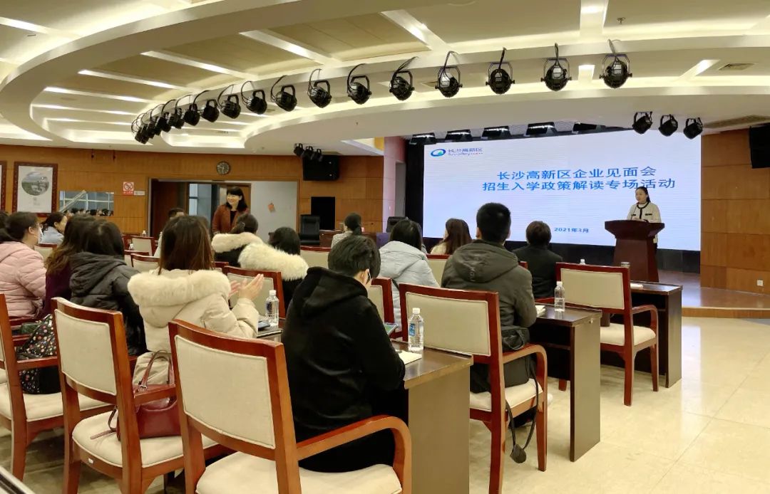 “近4年来,高新区累计投入教育资金近25亿元,资金投入逐年加大,尤其是近三年连续增长幅度超过了30%,在全市排名第一。其中,建设资金投入12亿元,先后新建了金桥小学、雷锋二小、雅礼麓谷中学等10所中小学,累计新增初中学位3000个,小学学位16740个。”专场活动现场,高新区教育局教育处相关负责人详细解读了高新区2021年的招生入学政策,介绍了入学基本原则、生源排序、公办小学整体布局及学区划分、公办中学具体招生范围等大家最为关心的教育问题。现场参会的企业代表,有的连忙掏出手机把信息画面拍摄下来,有的拿着笔记本在认真的做着笔记,生怕漏掉关键信息。