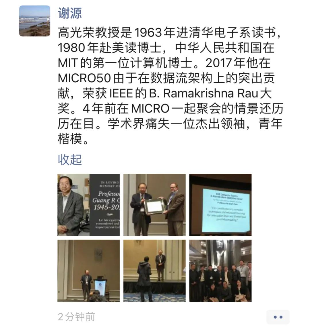 沉痛悼念世界级的计算机科学家、华中科技大学杰出校友、CCF海外杰出贡献奖获得者高光荣老师!高老师是MIT计算机专业毕业的我国第一位博士,是我在数据流研究领域的引路人,我目前承担的国家自然科学基金委数据流重点基金就是在高老师的指导下获得的,我们目前的图计算机研发思路也是遵循高老师的数据流思想进行设计的。先生风范,高山仰止!高老师,我们永远怀念您!