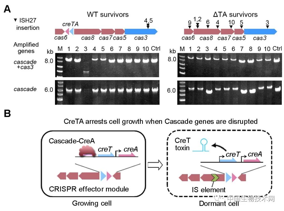 图1. CRISPR-Cas系统与CreTA毒素-抗毒素系统的互作机制