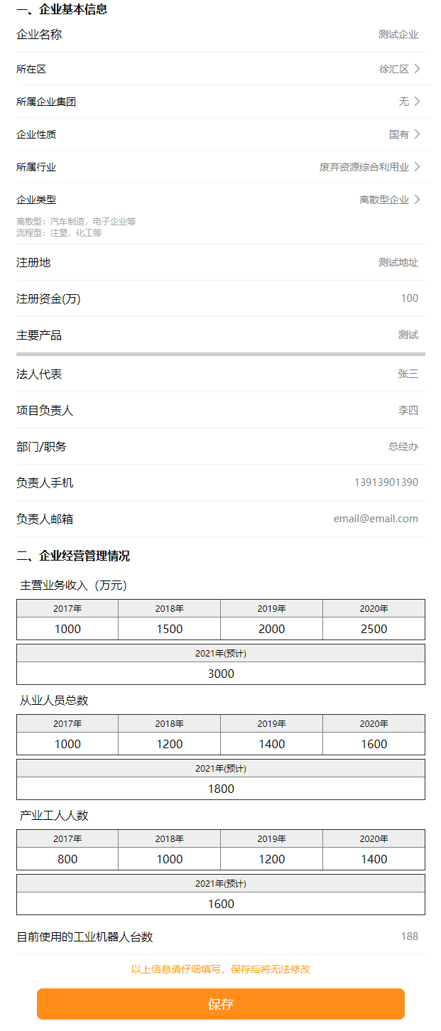 登录系统后,填写企业信息表,如图 3所示,请谨慎填写,保存之后无法修改。