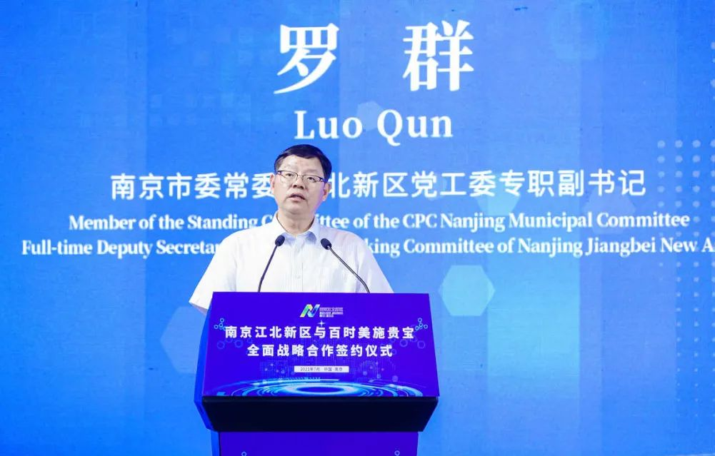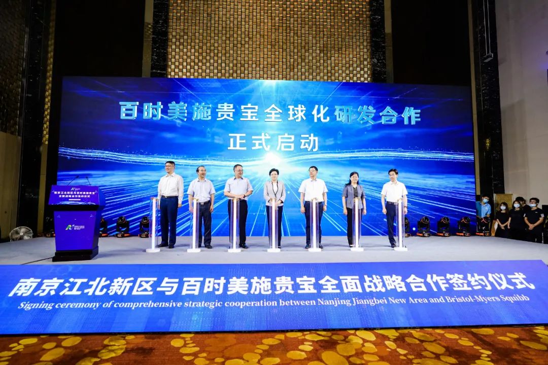 7月9日,南京江北新区与全球知名制药公司百时美施贵宝(BMS)签署全面战略合作协议。江苏省委常委、南京市委书记韩立明,南京市委常委、江北新区党工委专职副书记罗群,南京市委常委、秘书长蒋跃建,百时美施贵宝全球研发副总裁蔡学钧等出席活动。