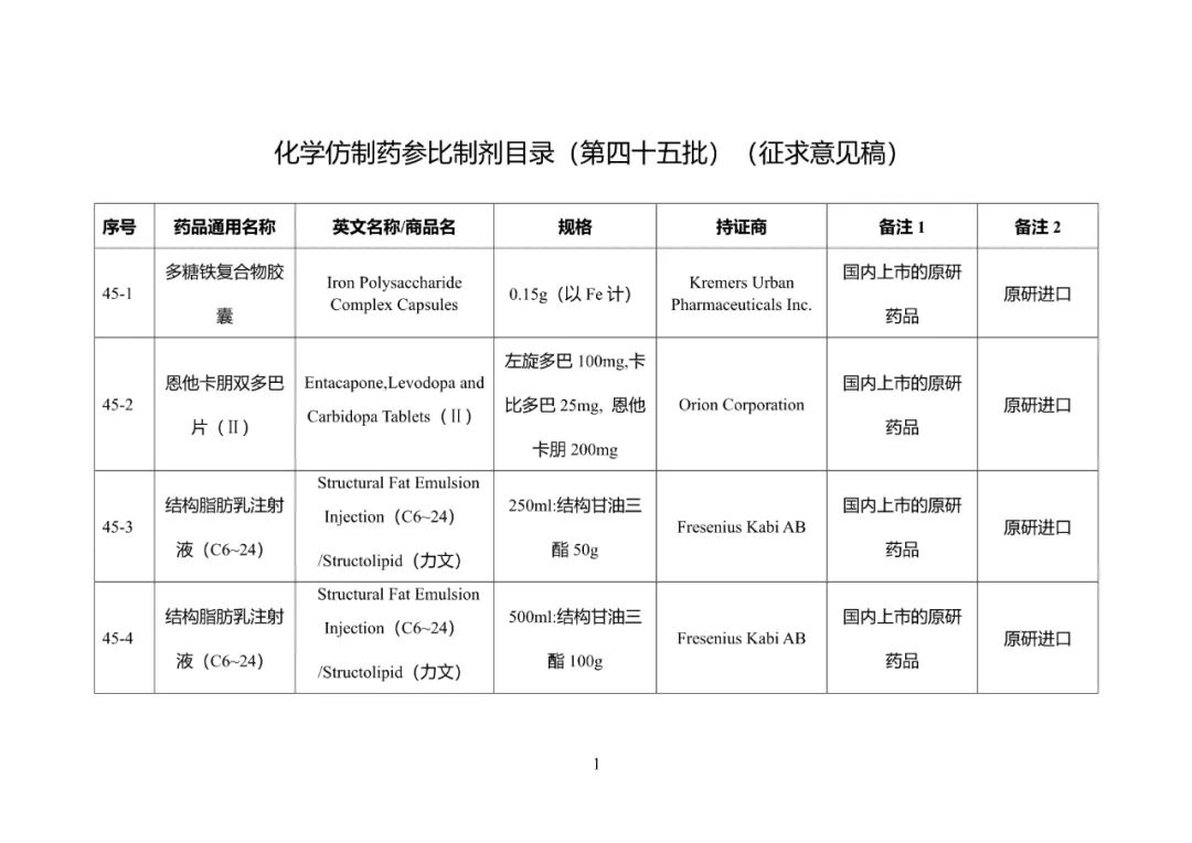 根据国家局2019年3月28日发布的《关于发布化学仿制药参比制剂遴选与确定程序的公告》(2019年第25号),我中心组织遴选了第四十五批参比制剂(见附件),现予以公示征求意见。