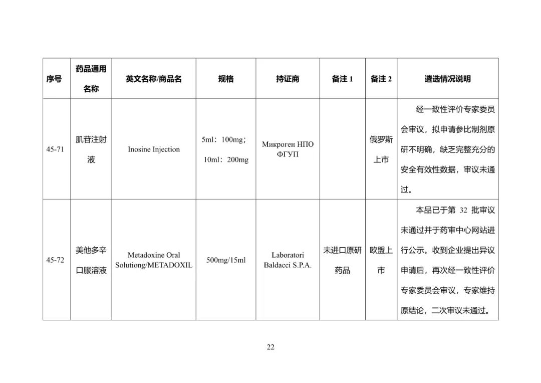 6月4日,CDE发布《化学仿制药参比制剂目录(第45批)》公示,新增23个、30个增补、26个未通过审议!