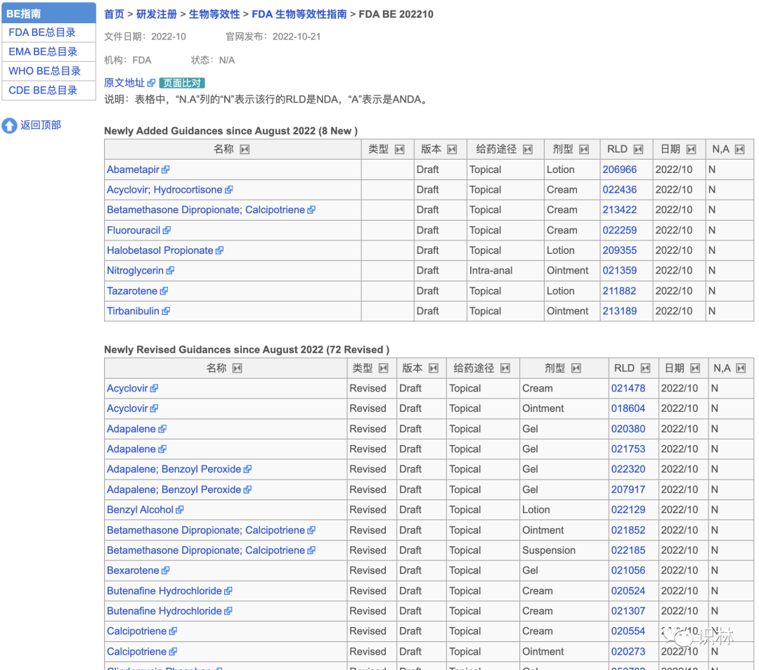 10.21【FDA】BE 指南 新增8篇,修订72篇