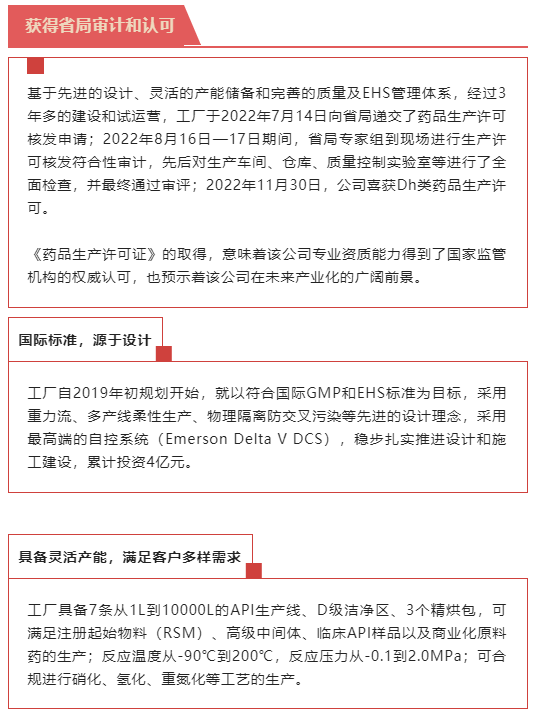 2022年11月30日,华先莱佛士大亚湾工厂获得广东省药品监督管理局颁发的Dh类《药品生产许可证》,标志着该公司迎来了发展道路上的一个重要里程碑。