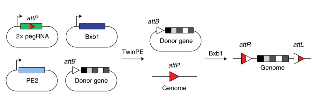 TwinPE和Bxb1整合酶介导的位点特异性基因组整合(来源:Nature Biotechnology)