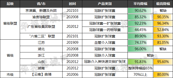 日前,京津冀联合新疆和新疆生产建设兵团共同组织探索开展了冠脉扩张球囊类医用耗材带量联动采购,据人民日报消息:经过本次集采,共有31家企业的72个产品中选,从均价3401元下降至319元,与2020年相比,相同企业的相同产品平均降价90%。其中28个外资企业产品,44个国内企业产品,国内产品平均降价90.72%,进口产品平均降价88.97%。截止目前,开展冠脉球囊类带量采购项目已有10个,覆盖全国28个省份,剩下3省中,上海、福建均对冠脉球囊类医用耗材开展了信息维护工作,仅安徽暂未有相关动态。