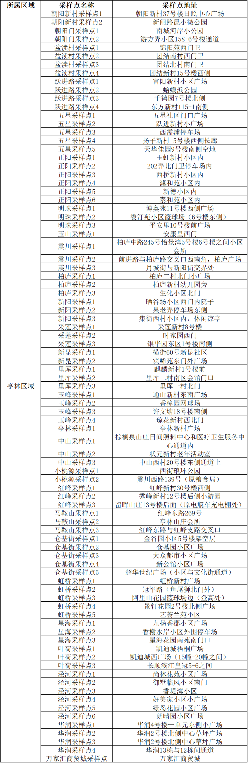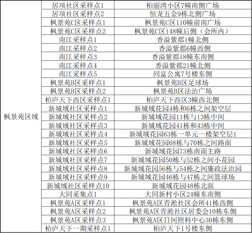 核酸检测采样点位明细