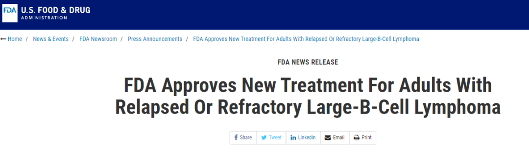 1.https://www.fda.gov/news-events/press-announcements/fda-approves-new-treatment-adults-relapsed-or-refractory-large-b-cell-lymphoma