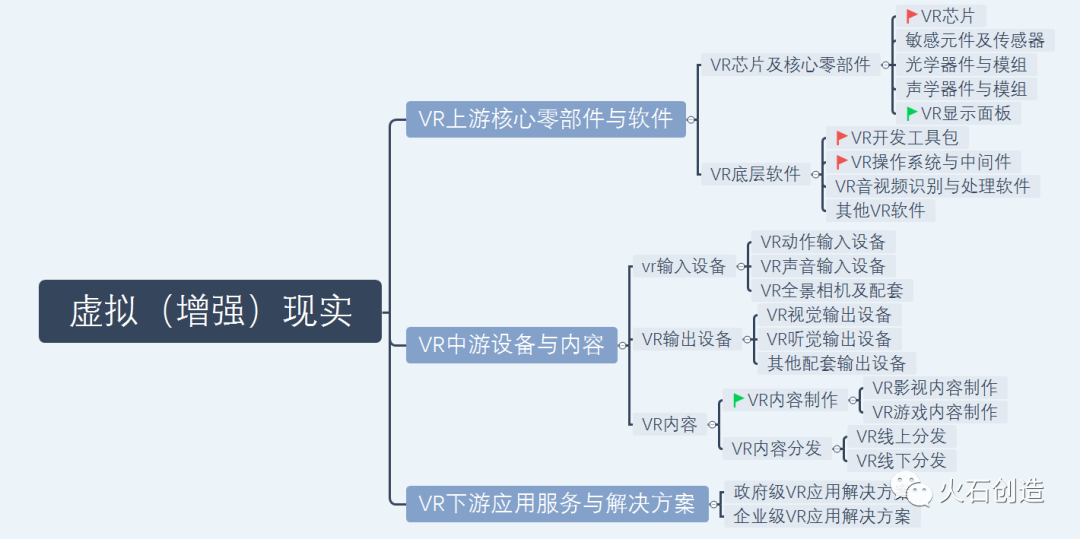 根据对VR产业的观察,该产业链由核心零部件与底层软件、核心设备与内容服务以及终端VR解决方案三大部分构成。如下图: