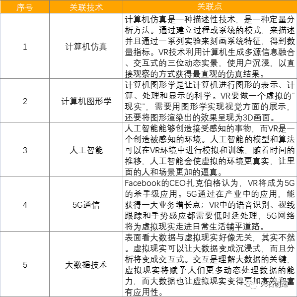 除了以上核心技术,与虚拟现实紧密关联的其他技术革新也对虚拟现实产业产生深远影响,这些关联技术主要是计算机仿真、计算机图形学、人工智能、5G通信与大数据。