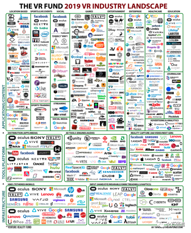 下图是VR基金2019年全球虚拟现实百强企业名录。相比2017年仅有一家入选,2019年则涌现出一批中国企业(华为、小米、大朋VR等)。