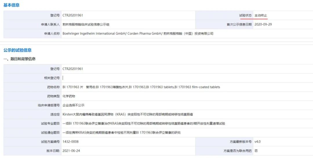 此外,clinicaltrials.gov网站信息显示,BI也已经终止了BI 1701963单药或联合MEK抑制剂BI 3011441 (NCT04835714)的临床研究。