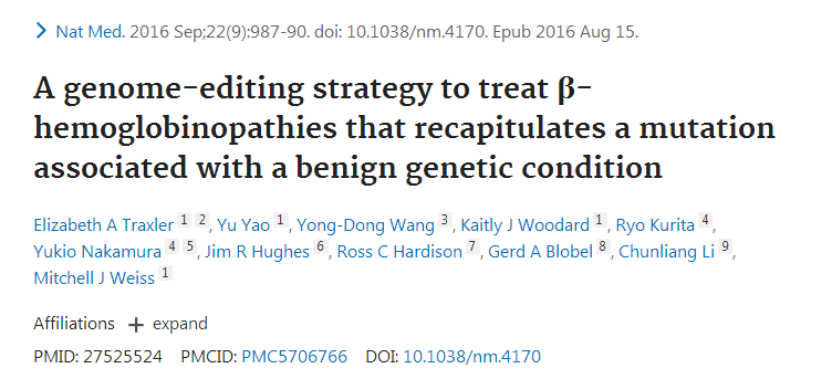研究人员已经知道,抑制或逆转血红蛋白亚基的“γ-β”转换可以提高成年人的胎儿血红蛋白水平,显著改善β地中海贫血或镰状细胞病的症状。“我们的工作鉴定出基因组编辑介导疗法的潜在DNA靶点,并为治疗镰状细胞病和β地中海贫血的可能方法提供了原理证明,”Weiss补充说。