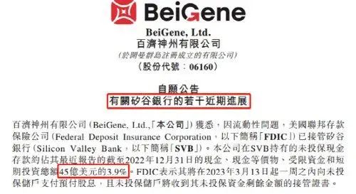 13日早间,百济神州在港交所公告,公司在SVB持有的未投保现金存款约占其最近报告的截至2022年12月31日的现金、现金等价物、受限资金和短期投资总额45亿美元的3.9%。