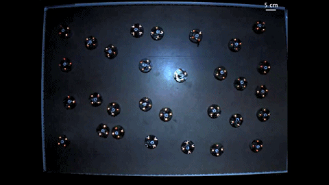 有了理论抽象和数学模型后,研究人员开始尝试用真实的集群机器人进行测试。