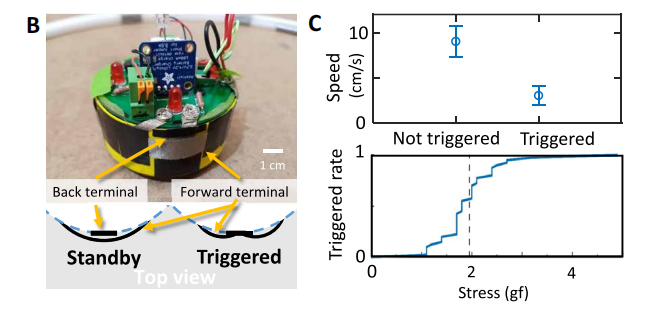 研究人员表示,由于这种推进结构的构造不对称,机器人主要会沿圆形轨迹移动,这些轨迹在其初始条件下是随机的,但与 SOPS 模型不同的是,BOBbots 引入了一定的噪声并且具有一定程度上的确定性,其移动速度约为 4.8 ± 2.0 cm/s。