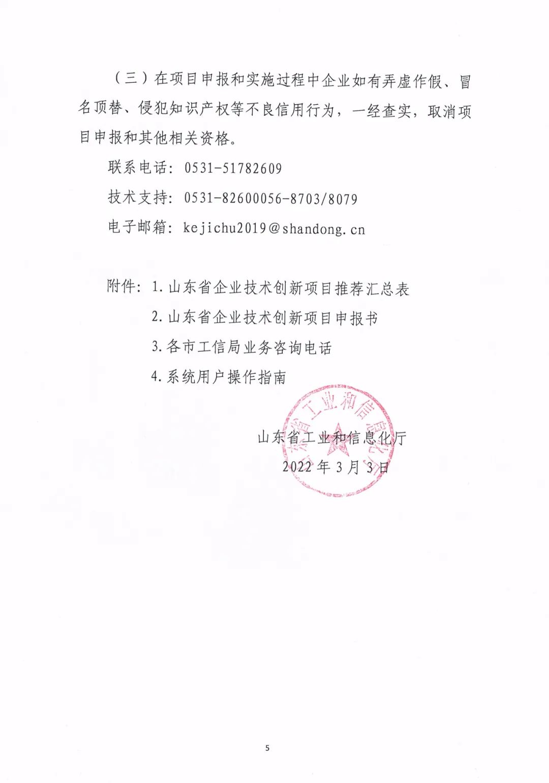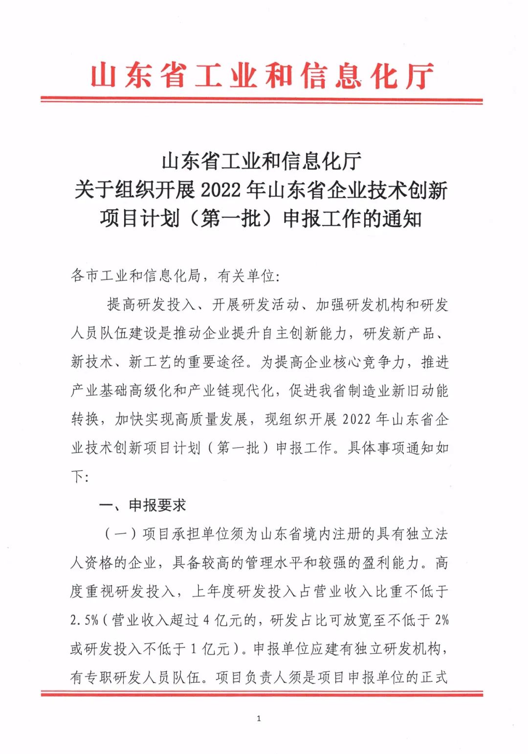 根据省工信厅通知要求,现就组织开展2022年山东省技术创新项目计划(第一批)申报有关事项通知如下: