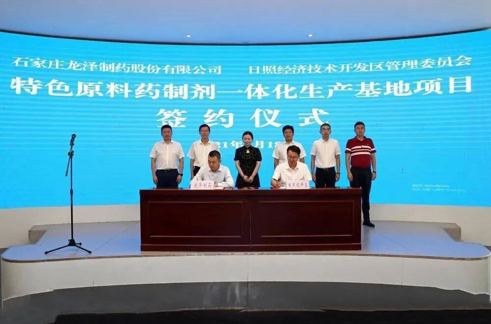 8月18日,日照经开区与龙泽制药股份有限公司签署协议,龙泽制药新建特色原料药制剂一体化生产基地项目落户日照经开区。该项目总投资20.32亿元,主要生产抗病毒、抗抑郁、抗神经痛等药物,全部达产后年销售收入将超过36亿元、利税超过10亿元。该项目的签约,是日照经开区培育壮大战略性新兴产业的又一重要突破,将有力促进日照经开区生物医药及大健康产业向高端化发展,也将为全区加快新旧动能转换和经济高质量发展注入强劲动力。