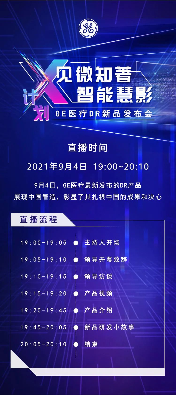 9月4日,GE医疗将召开2021 DR 系列新品发布会,介绍GE医疗在DR方面的最新成果和计划,三款重量级DR新品——悬吊DR Definium Tempo Pro、Definium Tempo和双立柱DR Definium 320也将在发布会上被重点介绍。