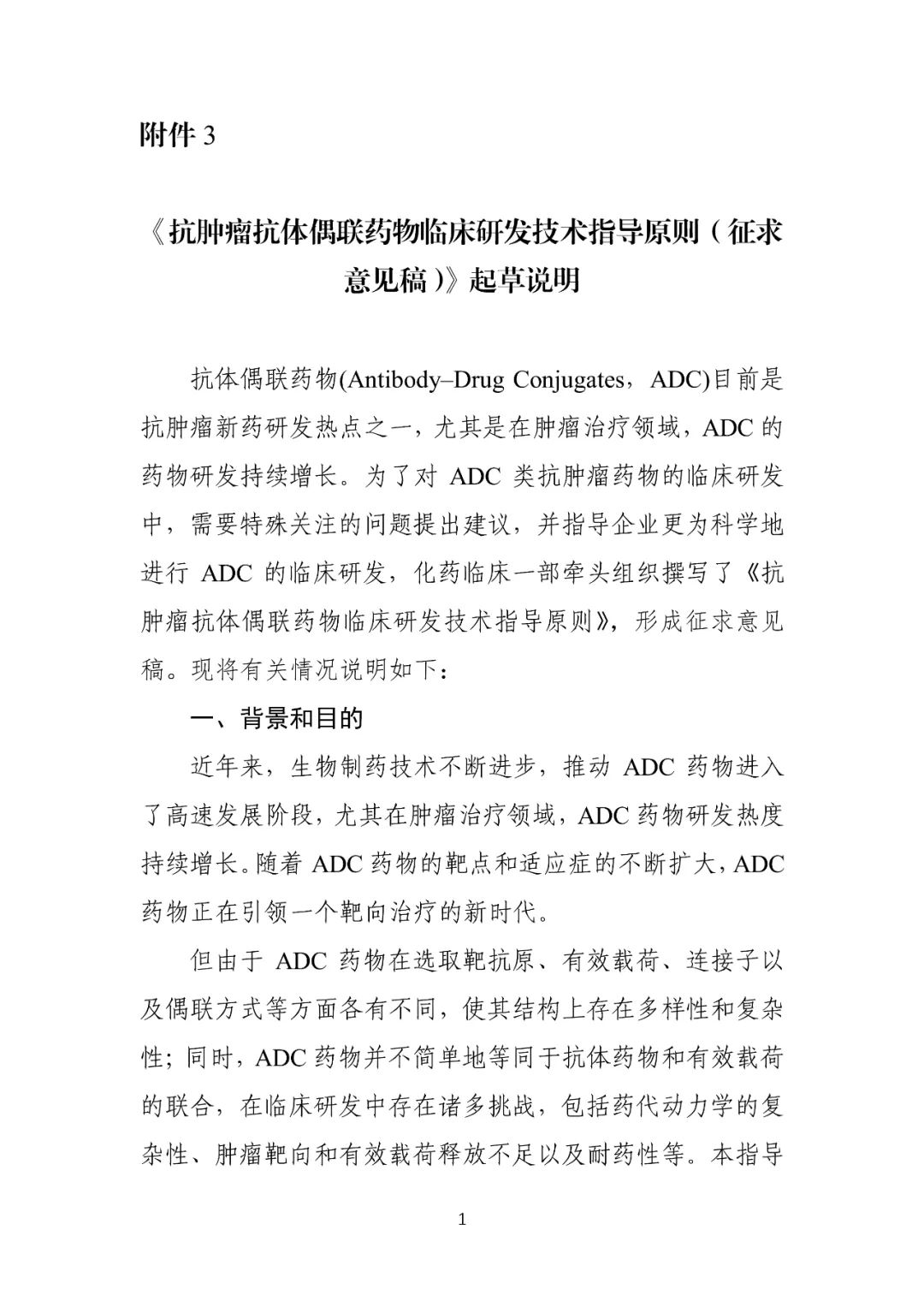 附件3:《抗肿瘤抗体偶联药物临床研发技术指导原则(征求意见稿)》起草说明