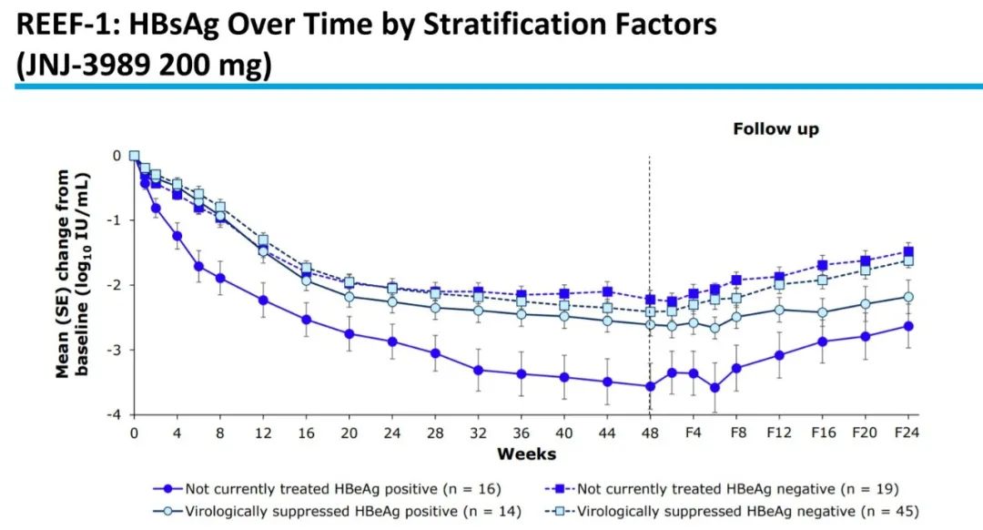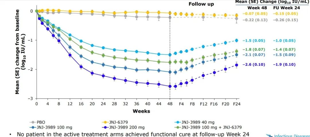 在JNJ-3989 200mg NA队列中观察到HBsAg的最大减少
