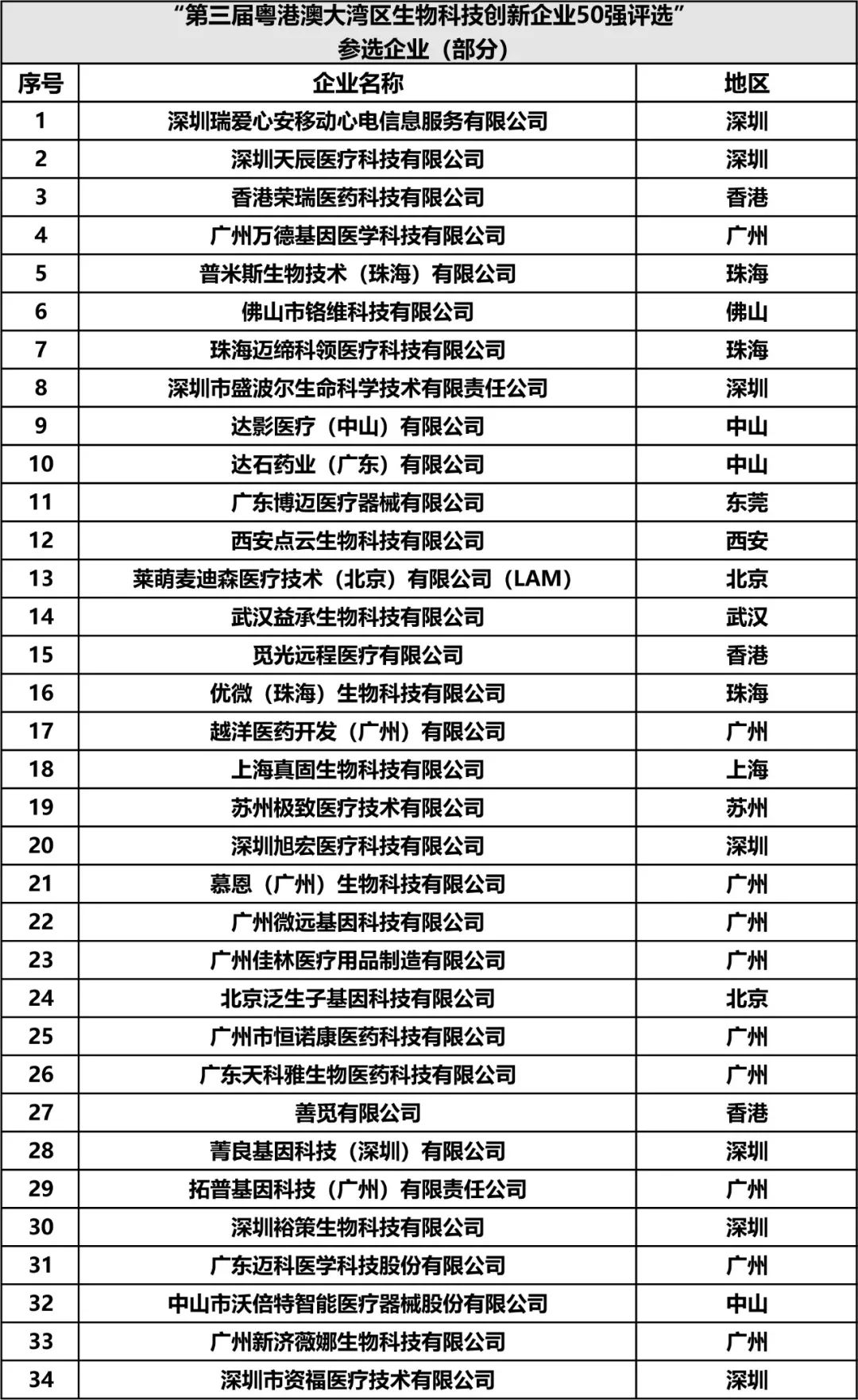 第三届粤港澳大湾区生物科技创新企业50强评选