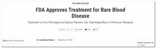 2021年11月12日,美国FDA批准台湾生物制药公司药华医药的长效干扰素制剂Besremi(该药通用名为:ropeginterferonalfa-2b-njft)注射液,用于治疗患有真性红细胞增多症(PV)的成年人。