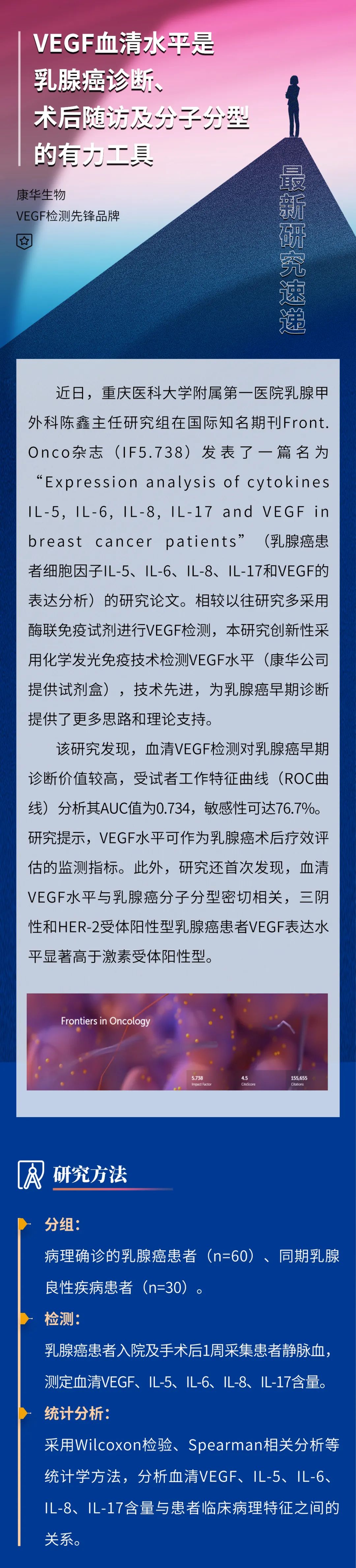 最新研究:VEGF血清水平是乳腺癌诊断、术后随访及分子分型的有力工具