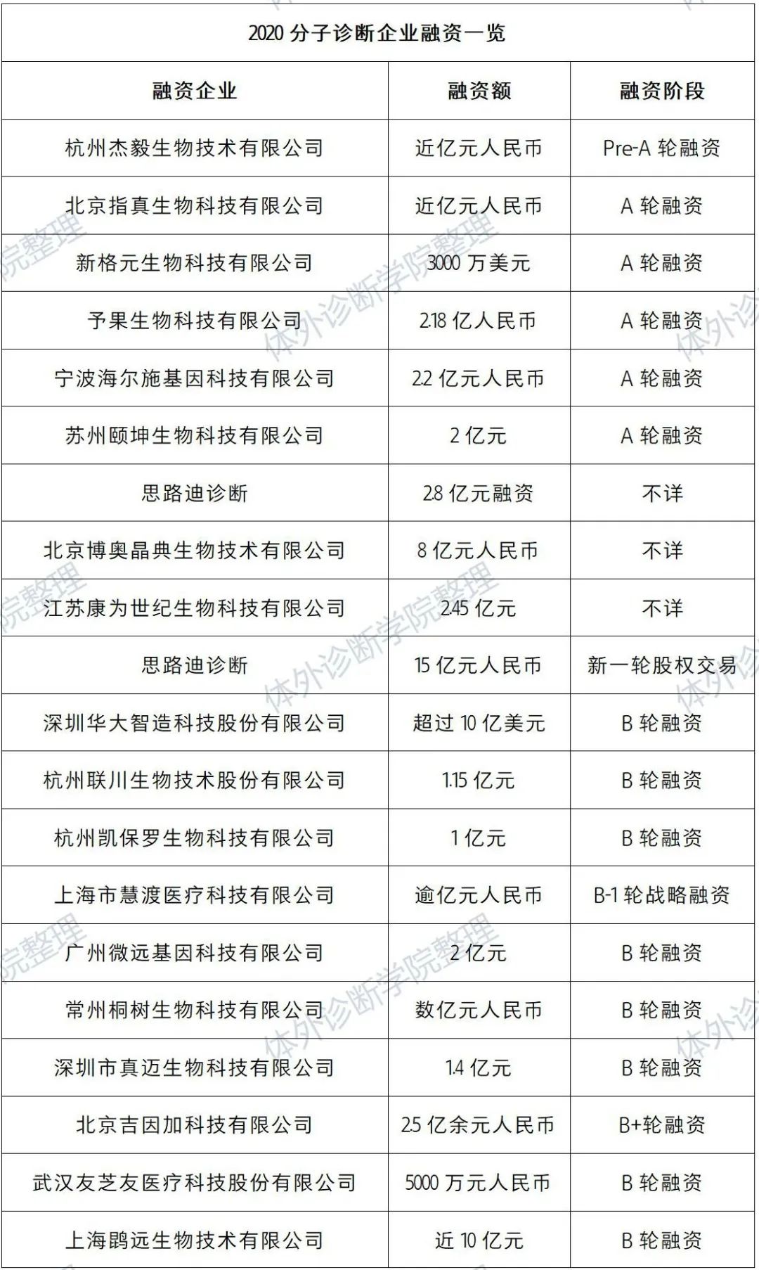 (2020年分子诊断企业融资一览,体外诊断学院相关课程整理)