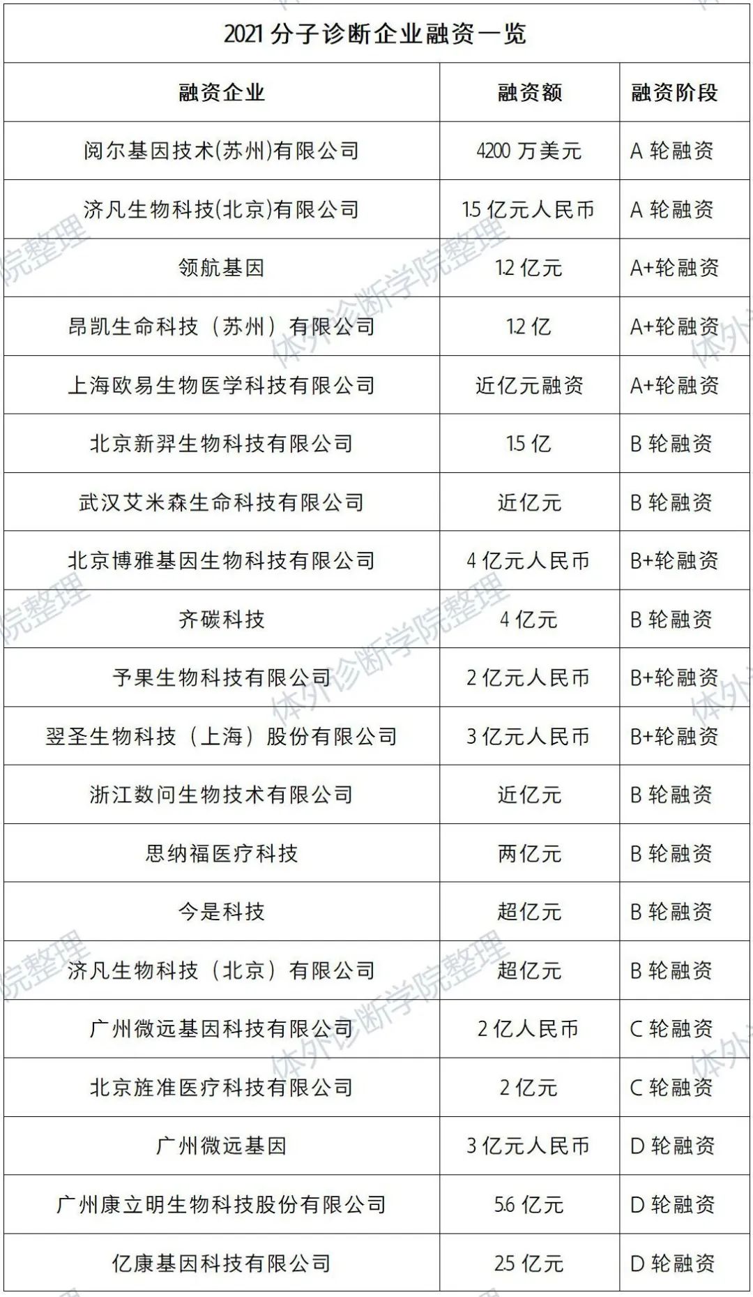 (2021年分子诊断企业融资一览,体外诊断学院相关课程整理)