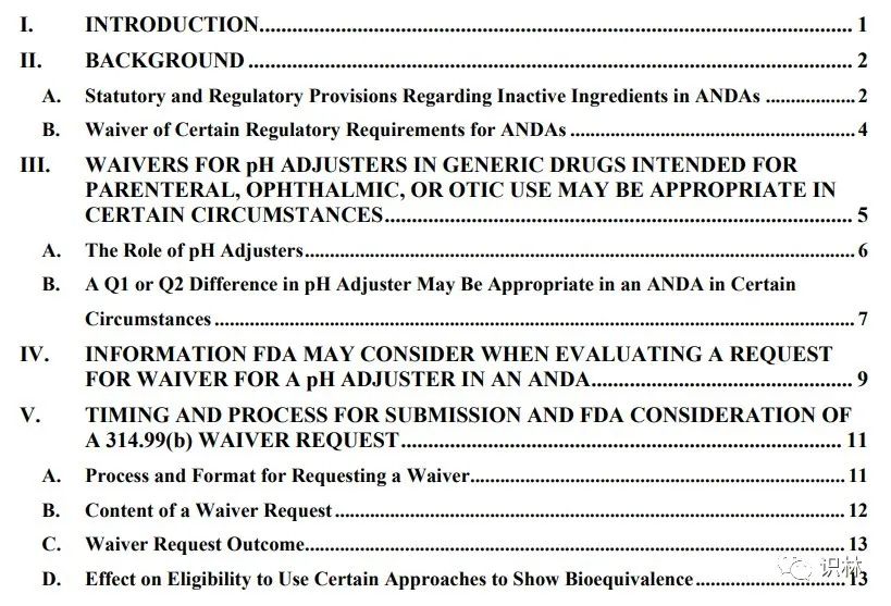 (注:仅目录翻译,用于初步了解,登录FDA官网或识林可查看指南全文)