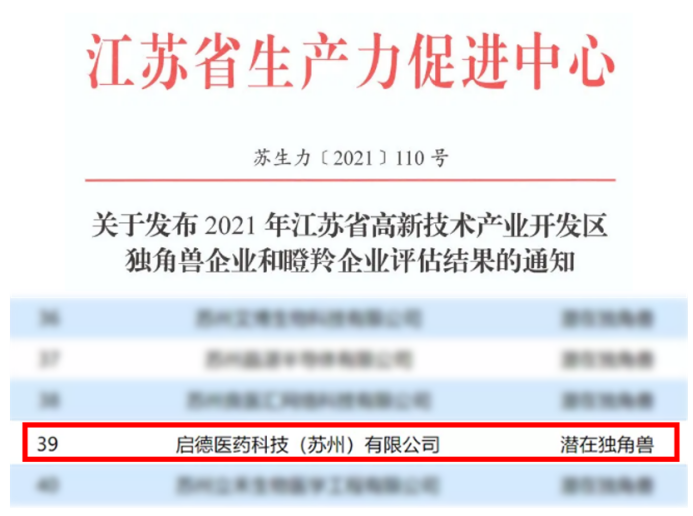 近日,致力于突破性创新生物偶联药物开发的全球性创新生物公司—启德医药获得江苏省“潜在独角兽企业”和苏州市“企业技术中心”荣誉称号。