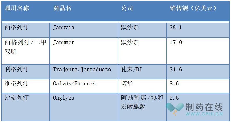 2022年主要DPP-4抑制剂全球销售额(亿美元)