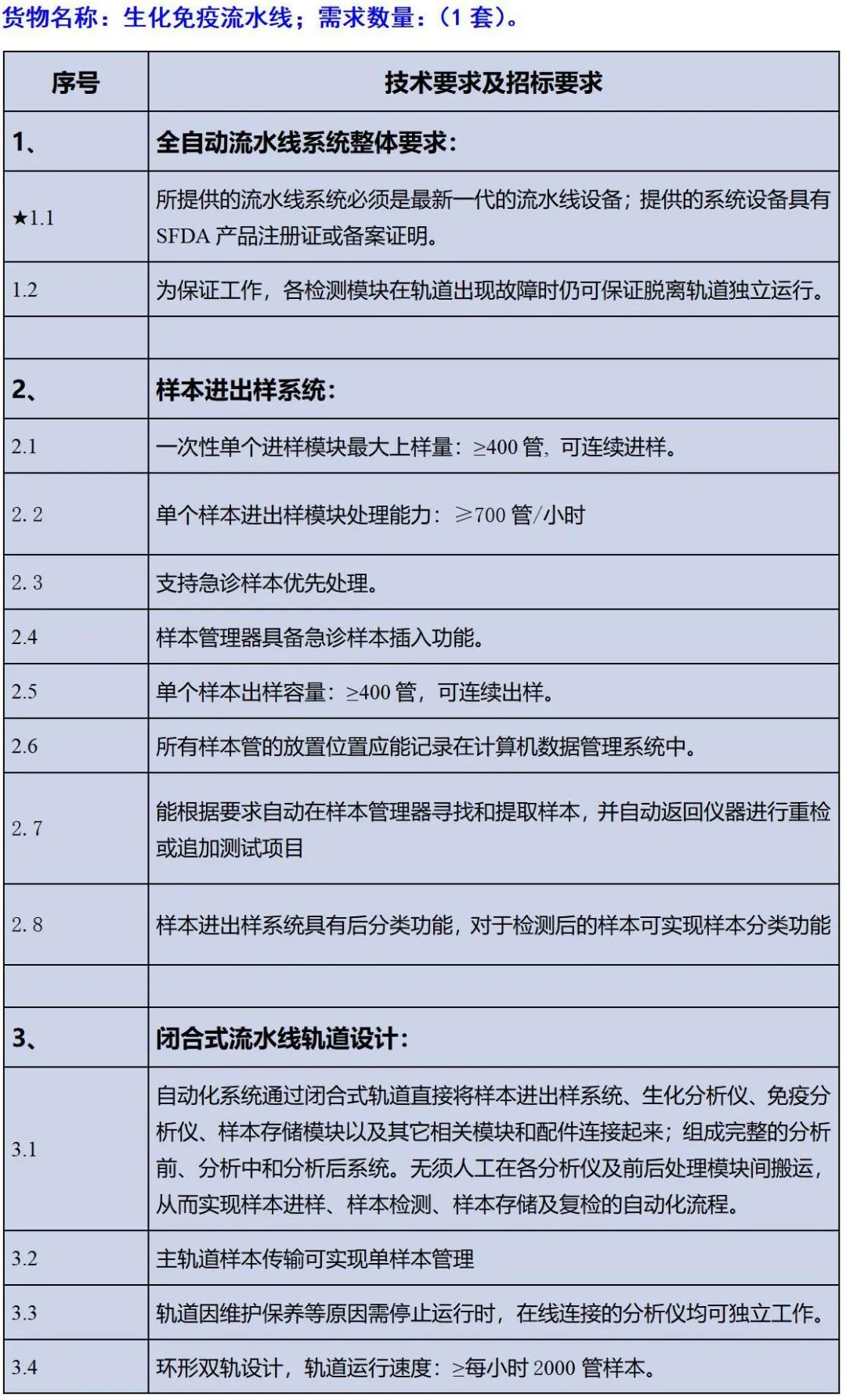 二、项目名称:大连医科大学附属第三医院医疗设备(生化免疫流水线)采购项目