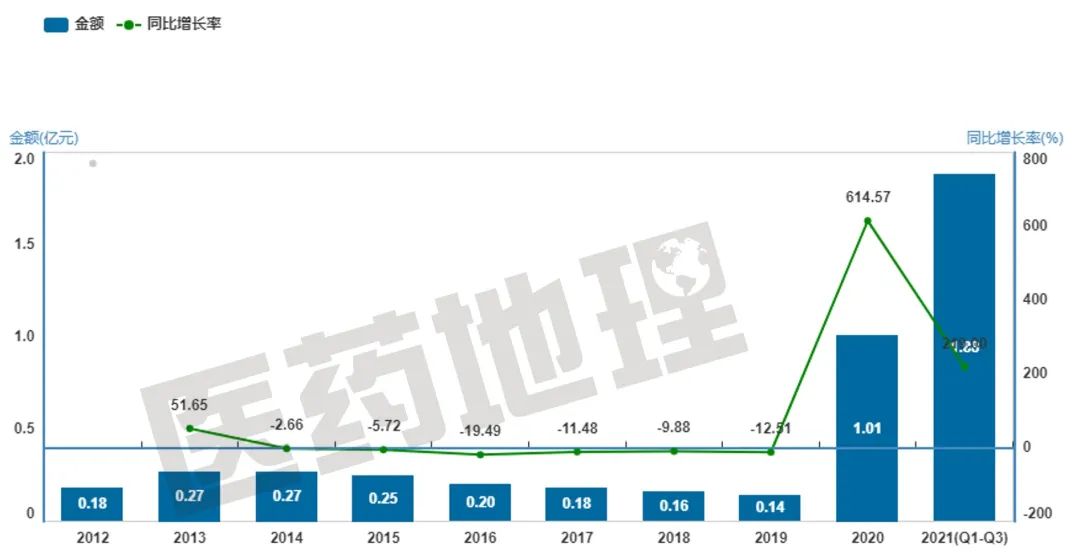 转折发生在2020年,2020年阿达木单抗样本医院销售额突破1亿元,同比增长614.57%。