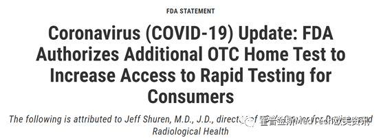在接受华尔街日报采访时,FDA负责IVD监管部门CDRH(Centerfor Devices and Radiological Health)的总监Jeffrey Shuren说:“今天的EUA授权将会进一步增加美国市场新冠自检试剂的供应。”