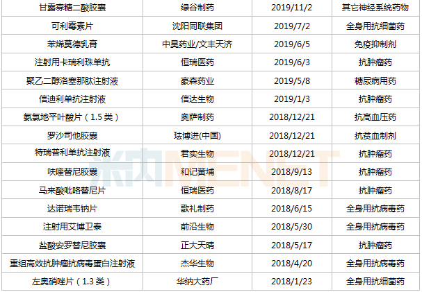 表1:2018-2020年获批上市的1类新药(不含疫苗)