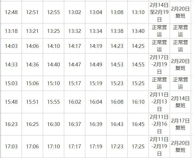 备注:2月11日至2月19日余姚汽车北站游九(299)停止营运。